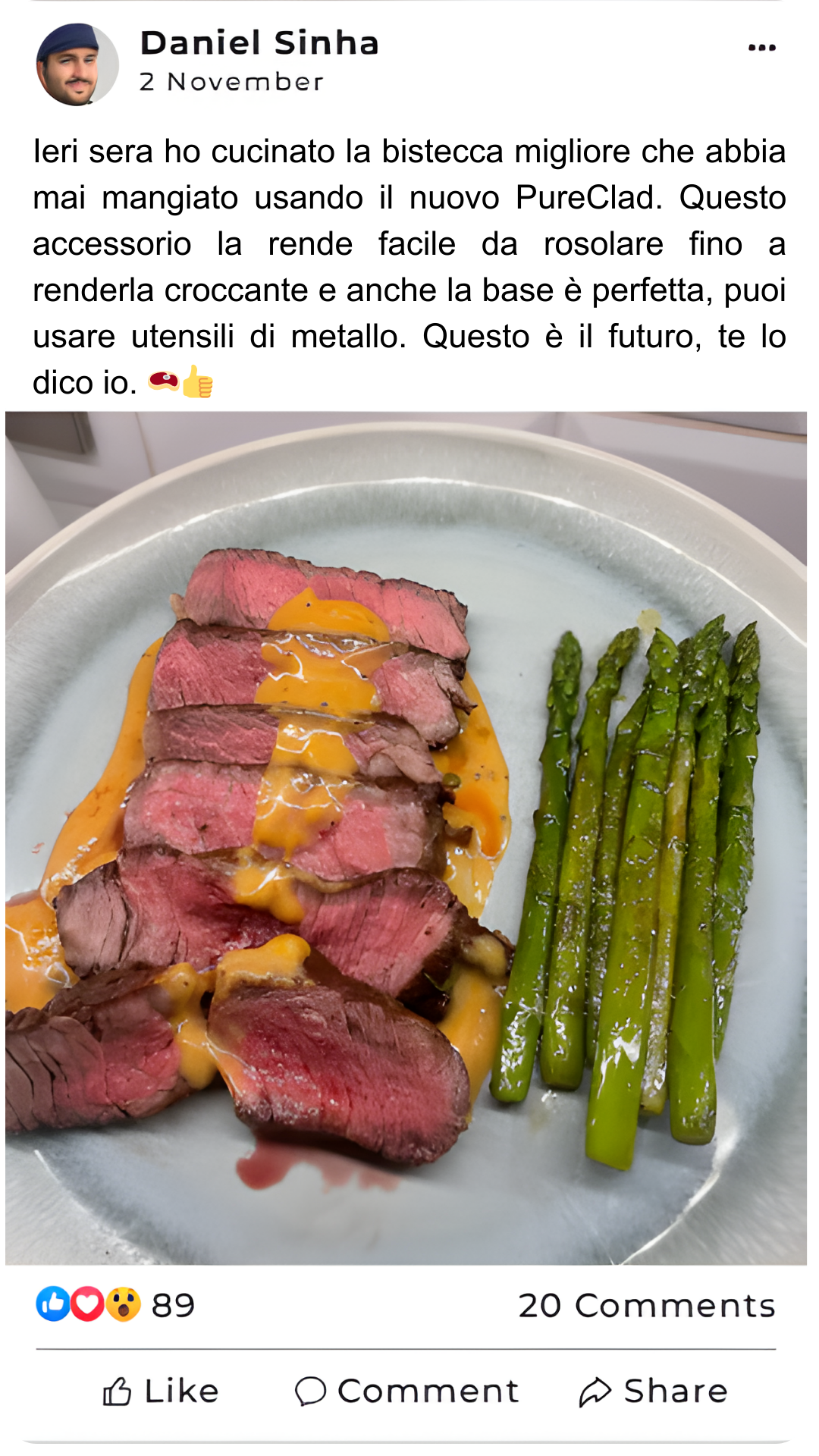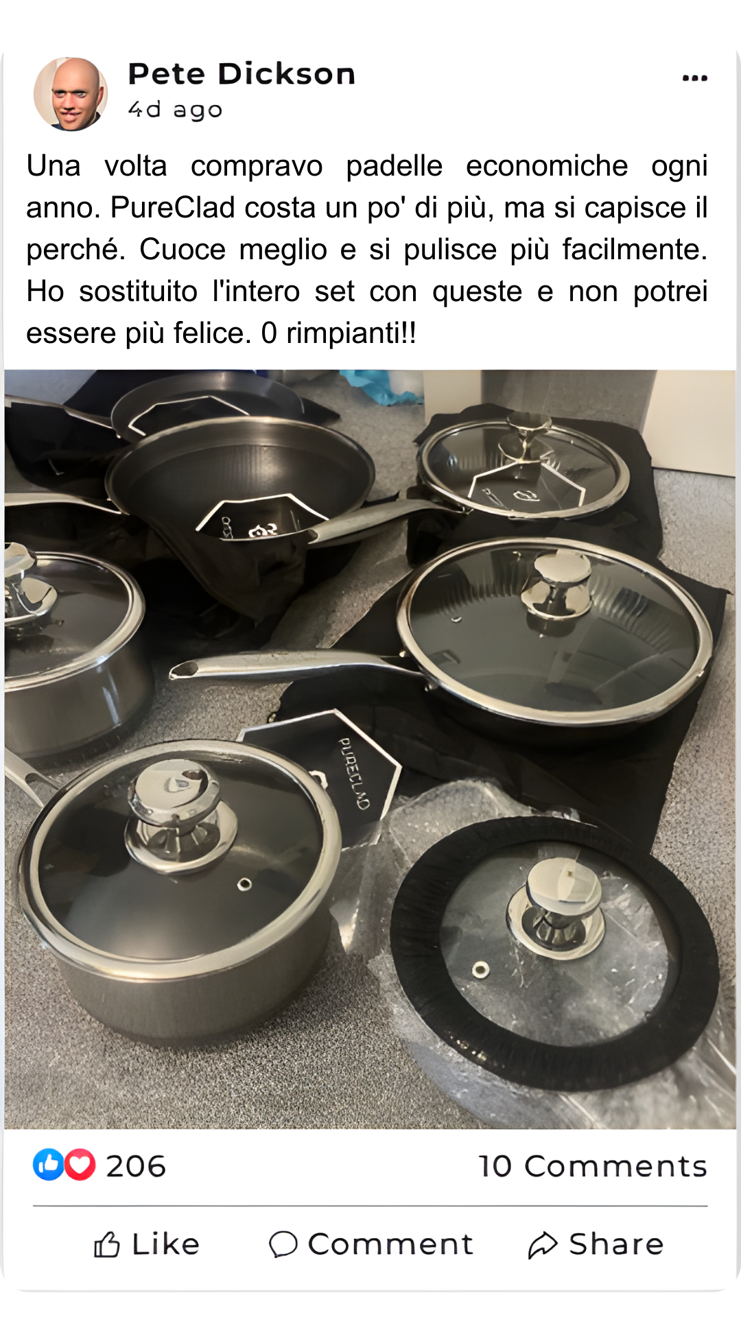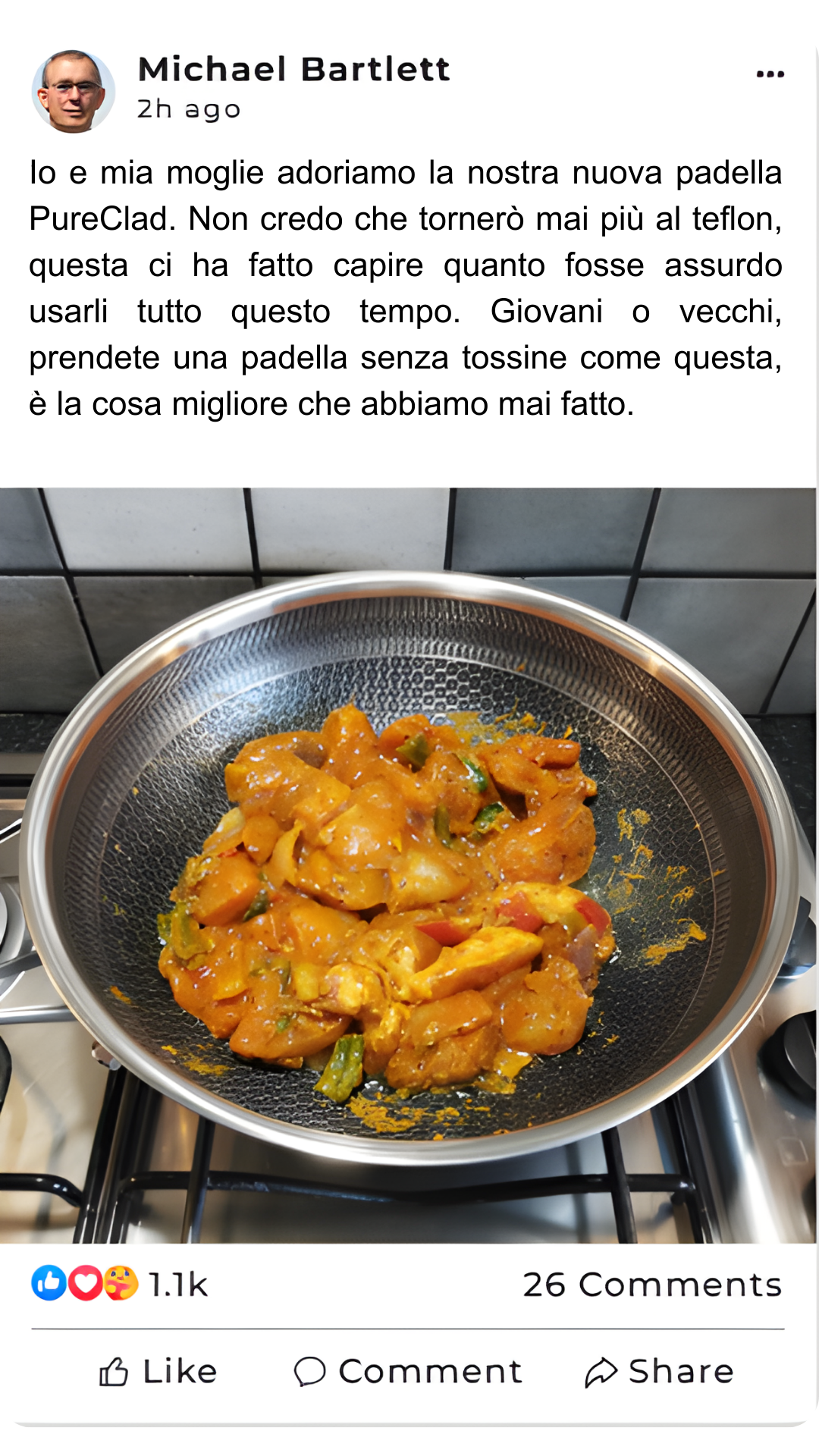 Sì, assolutamente. PureClad è completamente privo di PFAS, PFOA e sostanze chimiche nocive. È una scelta sicura e non tossica con cui puoi cucinare ogni giorno con serenità.