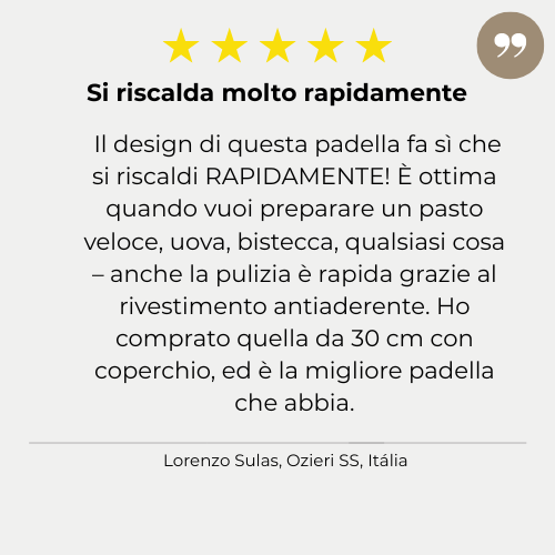 La pulizia è semplice. Il cibo si rimuove subito con una spugna. E se hai fretta? Puoi metterla in lavastoviglie, non sono necessarie particolari attenzioni come per le altre padelle.
